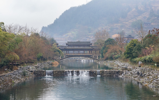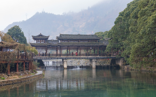 风雨桥由桥、塔、亭组成,全用木料筑成