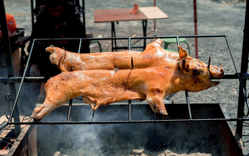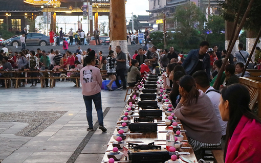 主要是集中在美食街这一带,这里的特色是豆花烤鱼,还有各种烧烤、烤乳猪