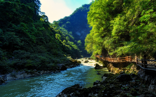 栈道一面靠山,一面临水,比较平缓,不会有很多需要攀爬的地方