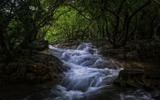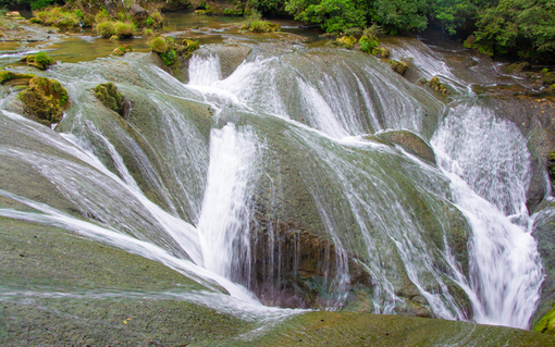 涵碧潭上游长1.6公里的狭窄山谷里,沿高高低低的河床,错落着68级瀑布和跌水