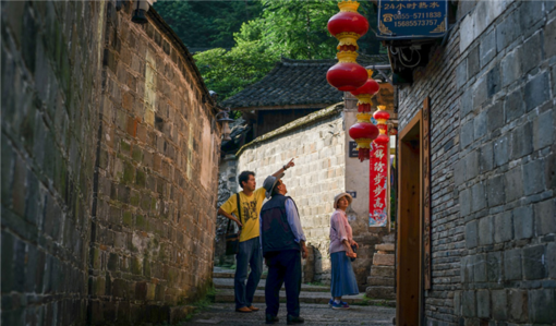 古镇建筑依山就势,城墙用巨石筑于悬崖上