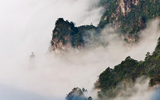 进入梵净山景区后,先乘坐观光车,然后可以乘坐索道