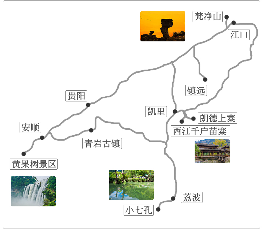 黄果树+梵净山+西江千户苗寨+镇远+荔波+青岩古镇+郎德上寨包车7日游(精品小团/畅玩小众秘境)