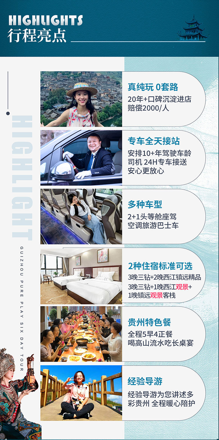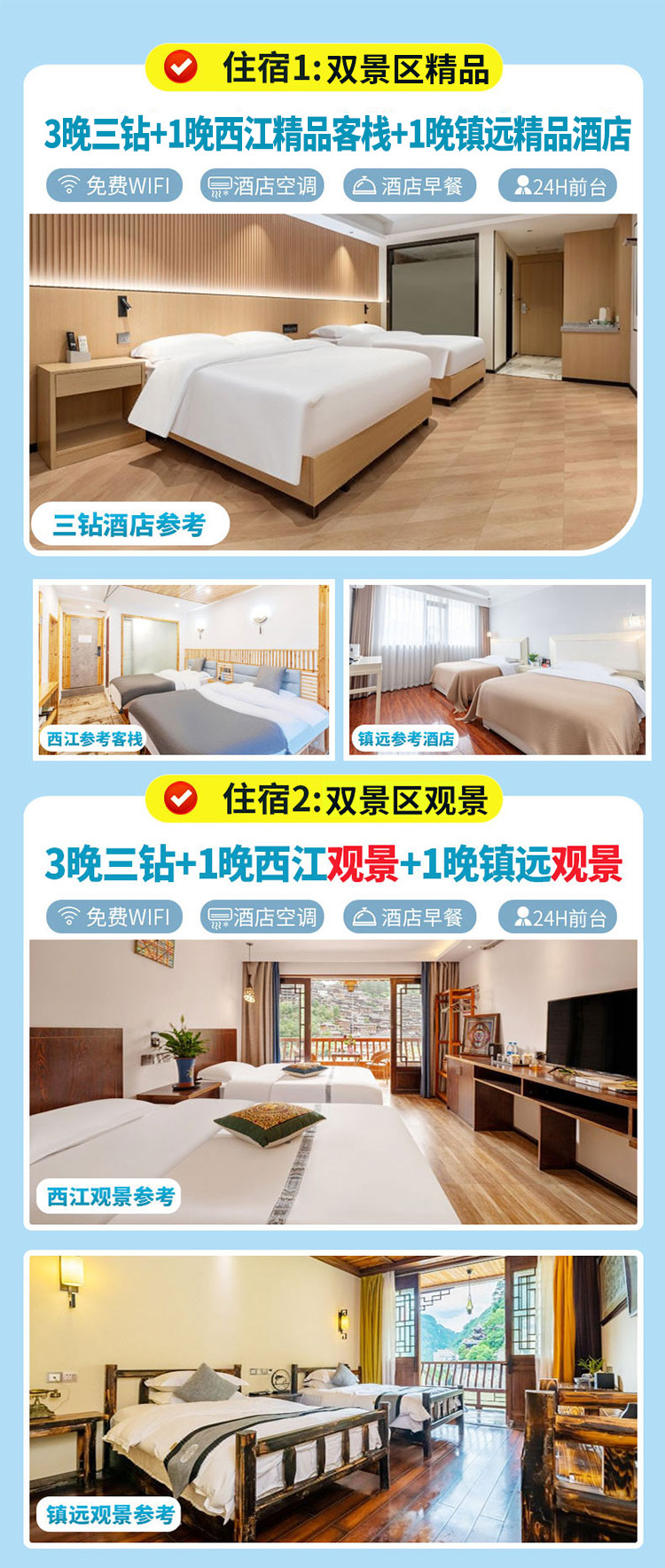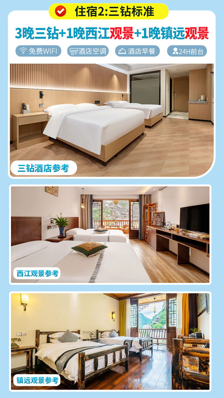 3晚3钻酒店+1晚西江观景客栈+1晚镇远观景客栈
