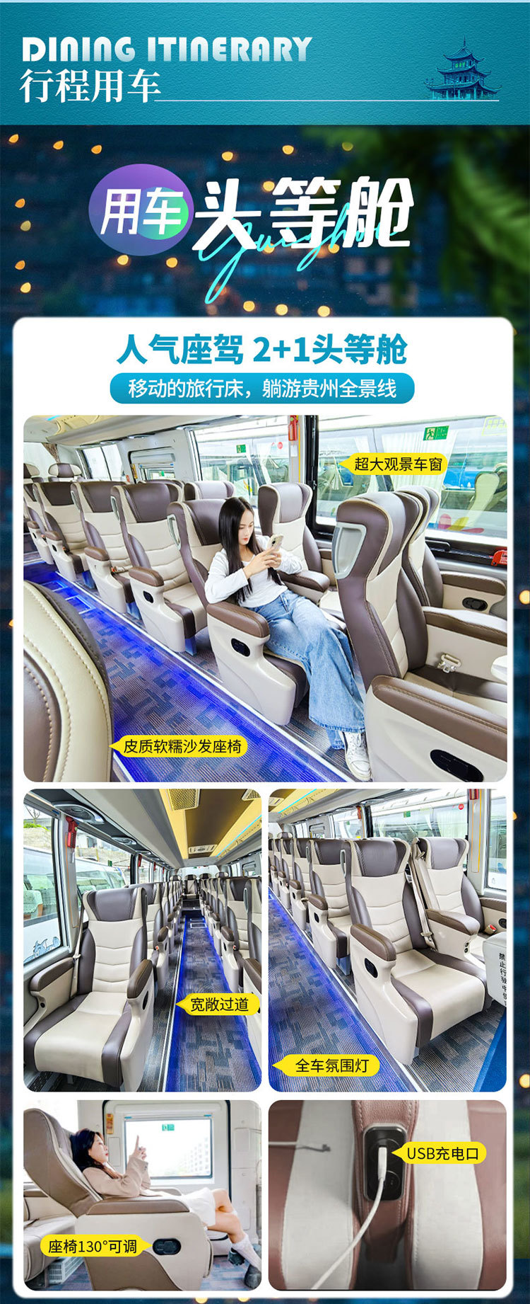 根据参团人数调派车型,保证一人一正座
