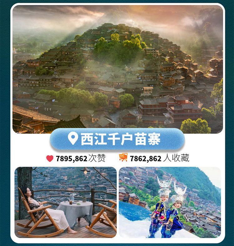 它是一个保存苗族原始生态文化完整的地方,由十余个依山而建的自然村寨相连成片,是目前中国乃至全世界最大的苗族聚居村寨。晚上登观景台欣赏璀璨迷人的西江夜景,千户万家灯火齐明,来一张美美的合影吧~