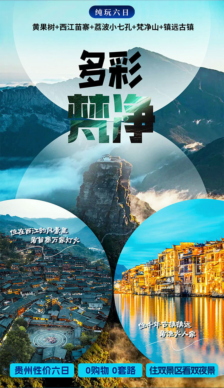 行程中所列景点首道大门票,梵净山、黄果树瀑布、西江千户苗寨、荔波小七孔