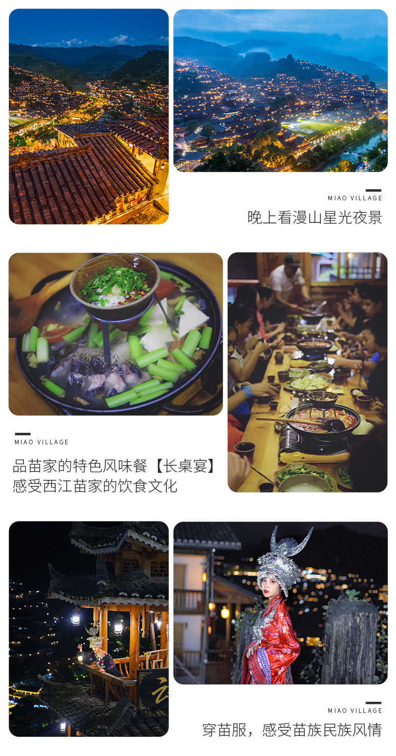 今日晚餐不含,游客自理;可品尝苗寨特色美食;