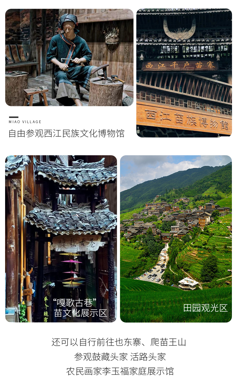 1. 【贵阳一环内免费小车循环接至贵阳市南明区花果园T2区3栋】集合;前往西江千户苗寨;
