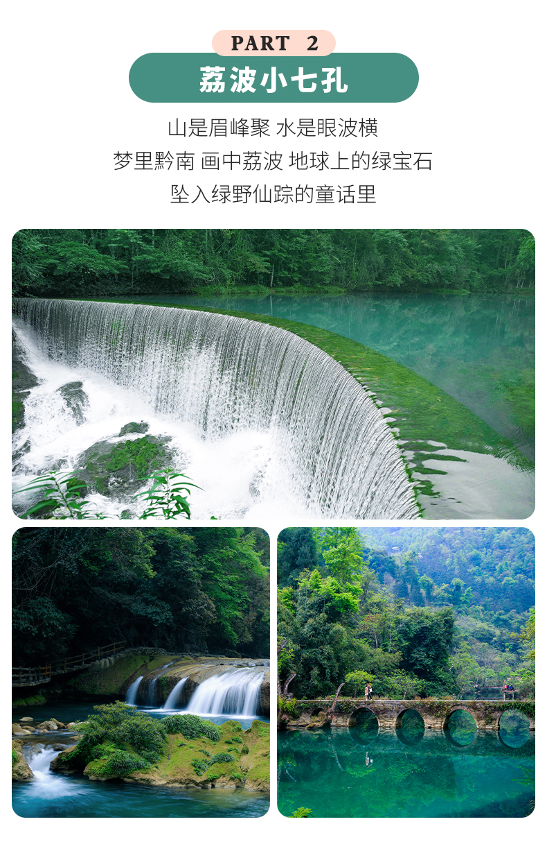 (行程安排会根据天气和道路交通情况,小七孔景区和西江千户苗寨游览顺序可能会做调整。)