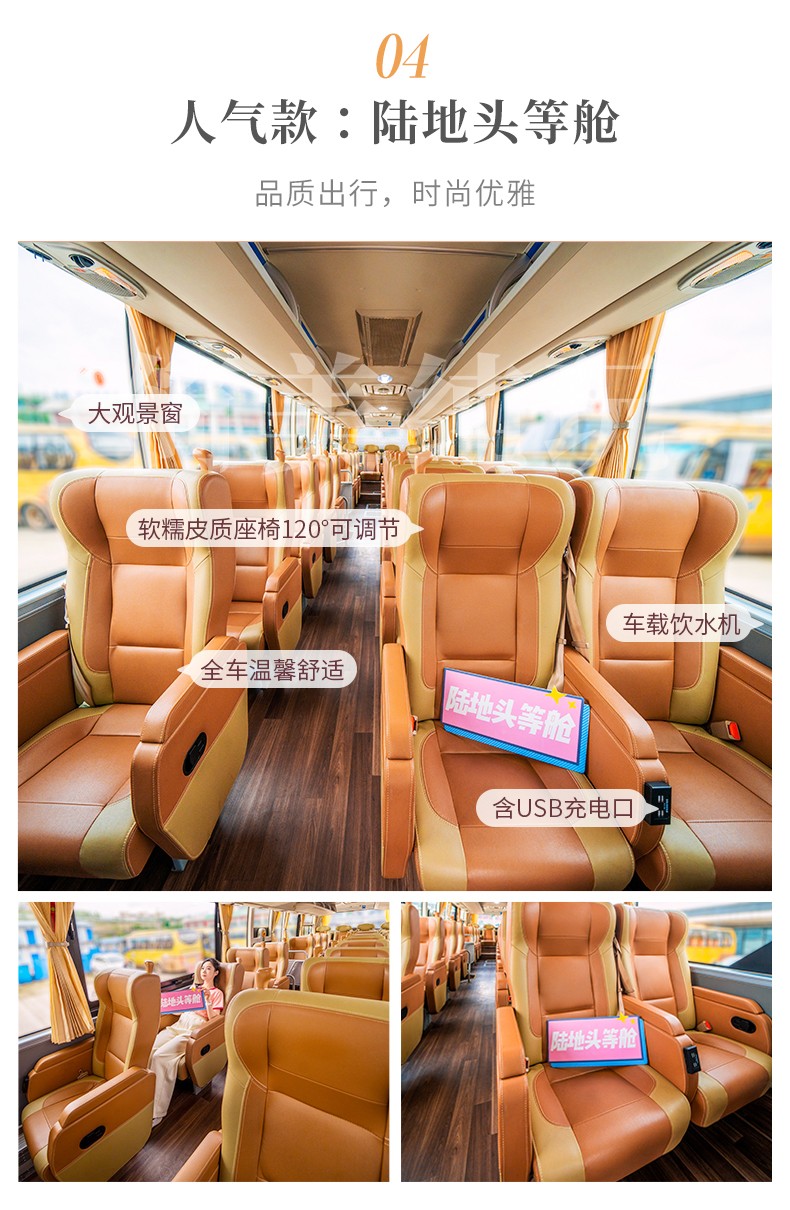 陆地头等舱空调保姆车22-35人团;此车最后一排和安全门座椅固定,无法平躺,上车选座,先上先选,敬请理解;