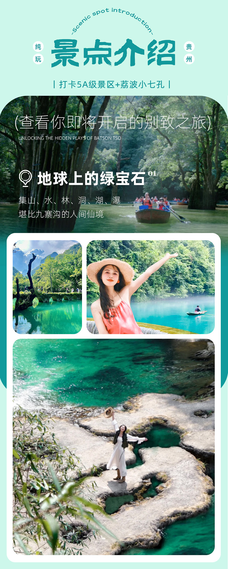 如果来贵州只能去一个地方旅游的话,那就把这次机会留给荔波吧!这里被称为地球腰带上的绿宝石,青翠欲滴的湖面,流转着淡淡的彩色光晕,就像遗落在人间最璀璨星星。