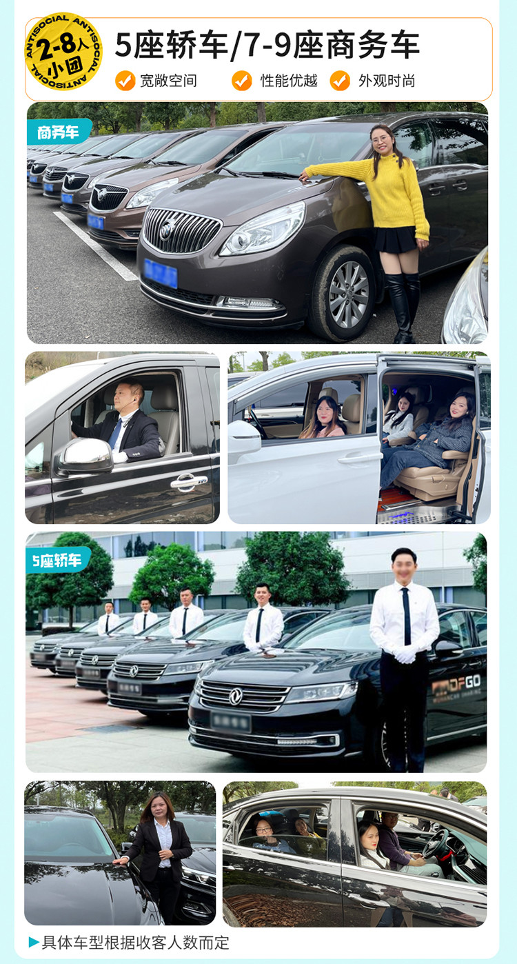 根据参团人数调派车型,保证一人一正座