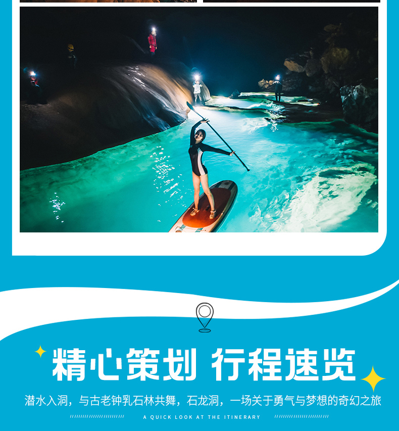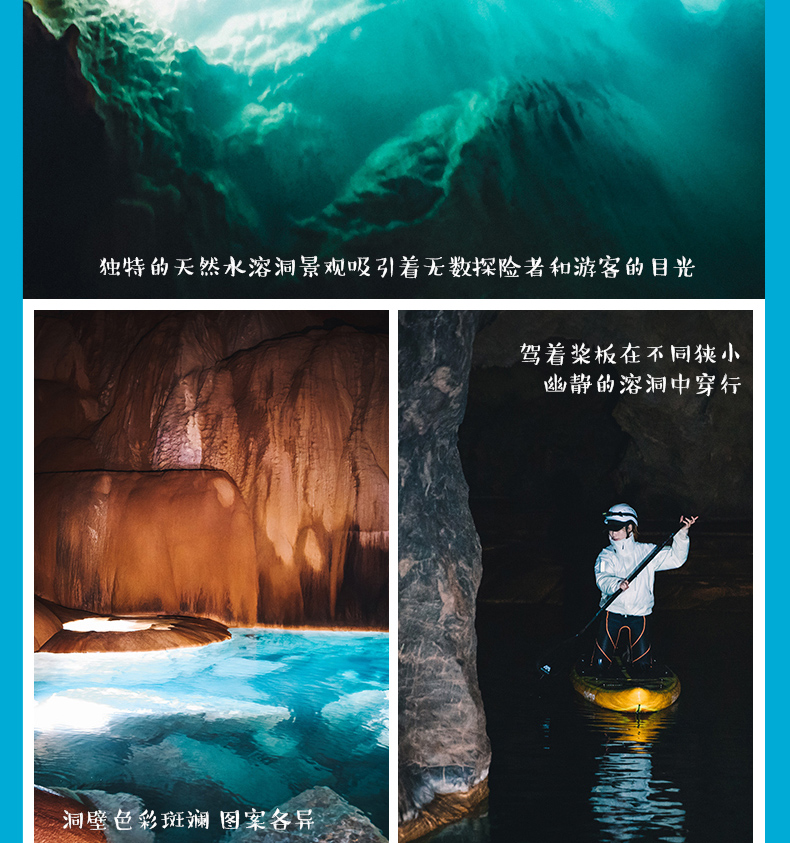 依次进洞,一路浆板划行,经过无数绝美瑶池,跟着领队拍大片