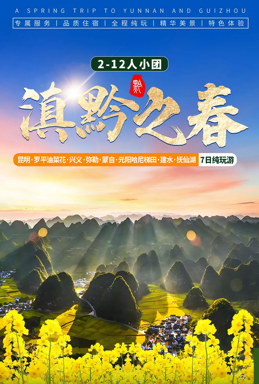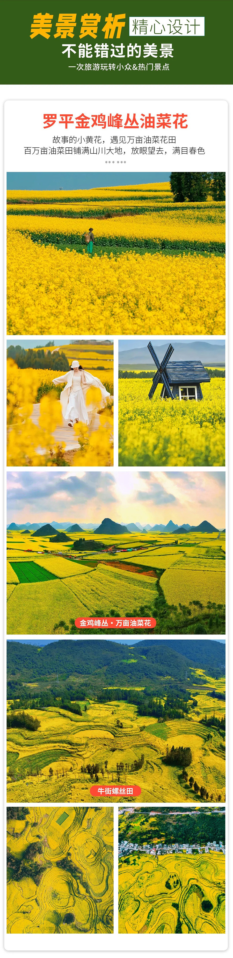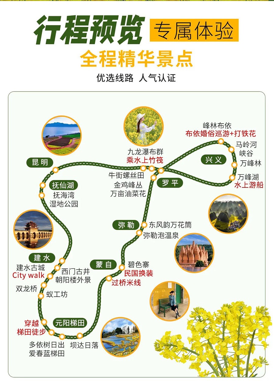 罗平油菜花的花期受气温、光照、雨水、风力等影响,无法准确预估,可能抵达时油菜花是未在盛花期,不接受花期投诉,请大家知悉,敬请理解!