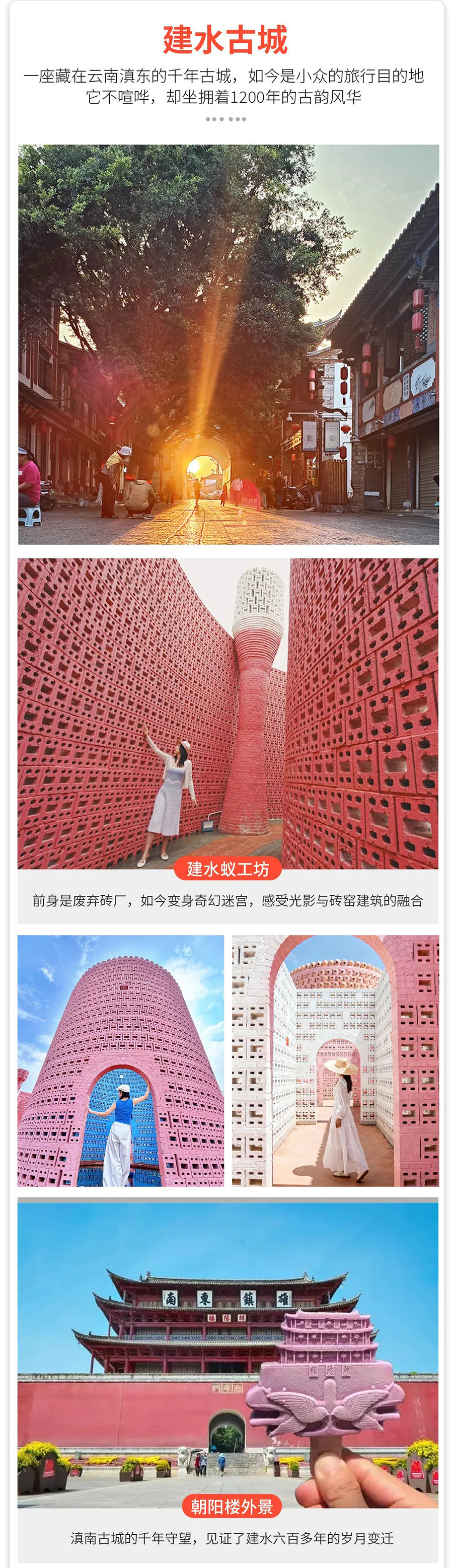 傍晚自由逛【建水古城】漫步于历尽沧桑,古迹斑驳的建水古城,踏上弯曲的青石板路,可重返《十二道锋味》《舌尖上中国》的足迹。