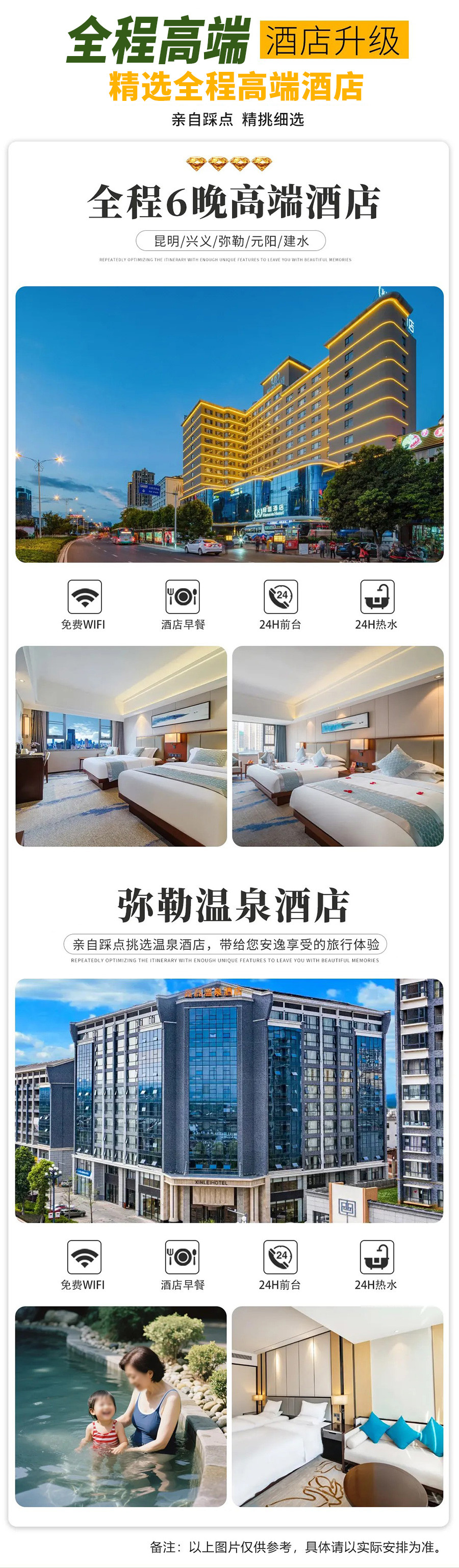 行程中所列酒店,6晚住宿