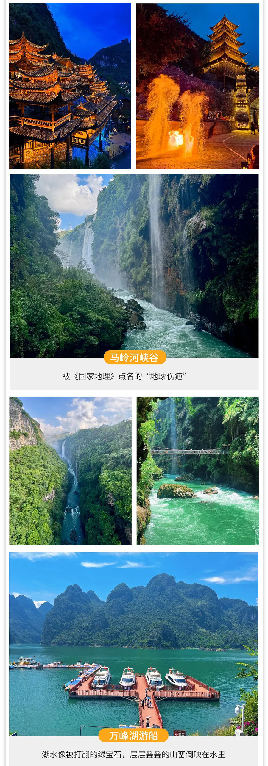 九龙瀑布游玩结束,我们前往【峰林布依】该景区灯光璀璨,吸引游客前来赏夜景、观民俗活动(布依婚俗巡演+民俗歌舞表演+非遗打铁花+篝火晚会),乐享悠闲时光。