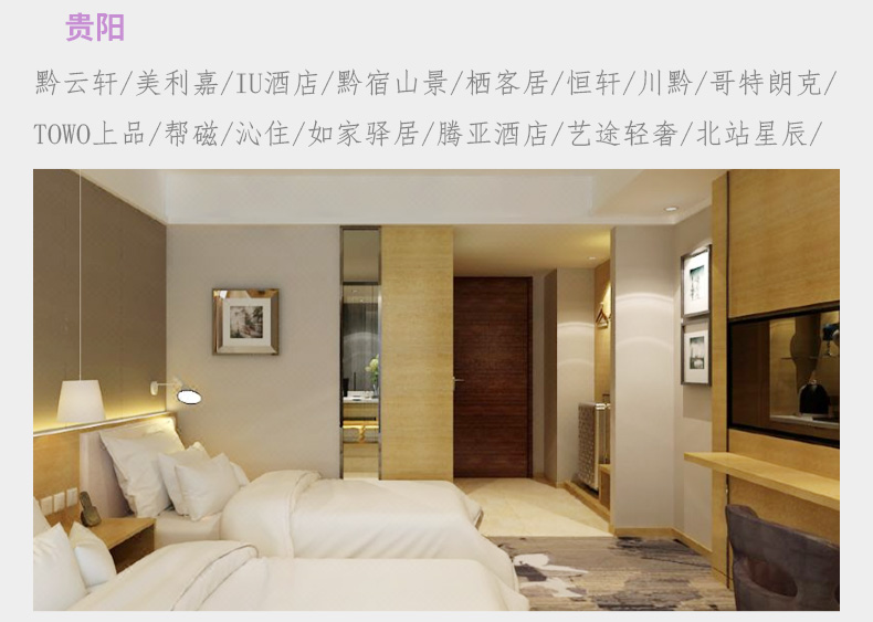 参考酒店: 黔云轩/美利嘉/IU酒店/黔宿山景/栖客居/恒轩/川黔/哥特朗克/TOWO上品/帮磁/沁住/如家驿居/腾亚酒店/艺途轻奢/北站星辰/