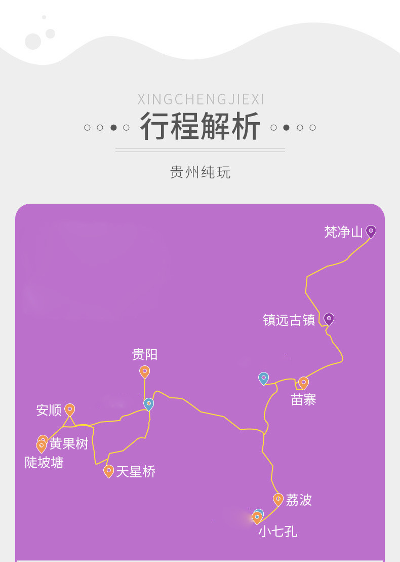 【A线】不含景区小交通费用:黄果树观光车+景区保险60元,西江电瓶车+景区保险30元,小七孔观光车+景区保险50元,梵净山观光车+景区保险+往返索道198元,镇远古镇观光车20元,以上费用必须产生,团费不含,敬请自理;黄果树大扶梯单程29元,往返50元,鸳鸯湖划船30元(自愿选择参加);