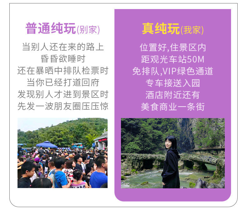 2. 门票说明:本产品已将相关景点进行优惠打包,14岁以下儿童免门票,但需大人带领进入景区。因旅行社门票为团队优惠票,持各类特殊证件(如:军官证、记者证、老年证、学生证、残疾证等优惠证件)