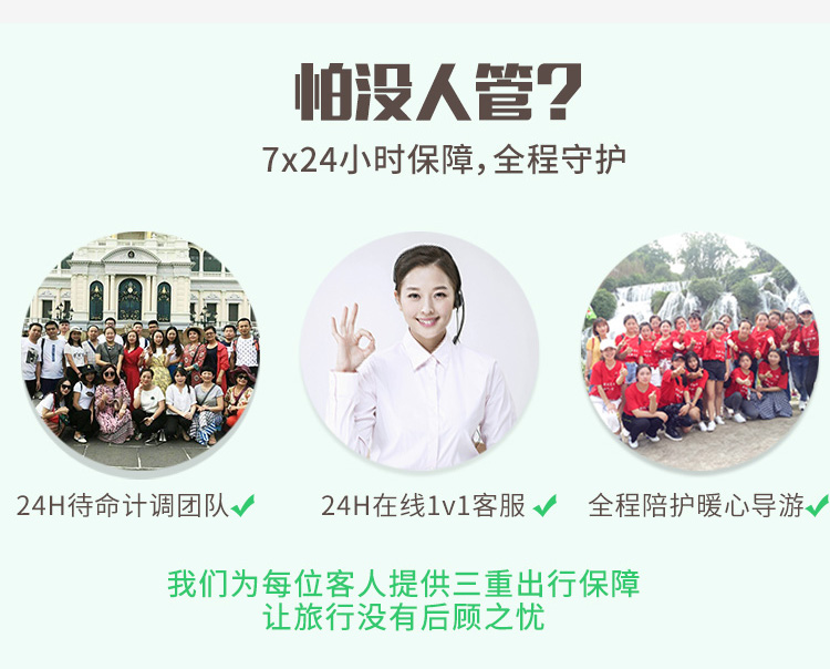 2. 导游会在出行前一天晚上21点前,短信/电话联系通知您次日具体出发时间等相关事宜,开始行程后,有任何的问题,请第一时间联系客服,我们必将竭尽全力解决问题;