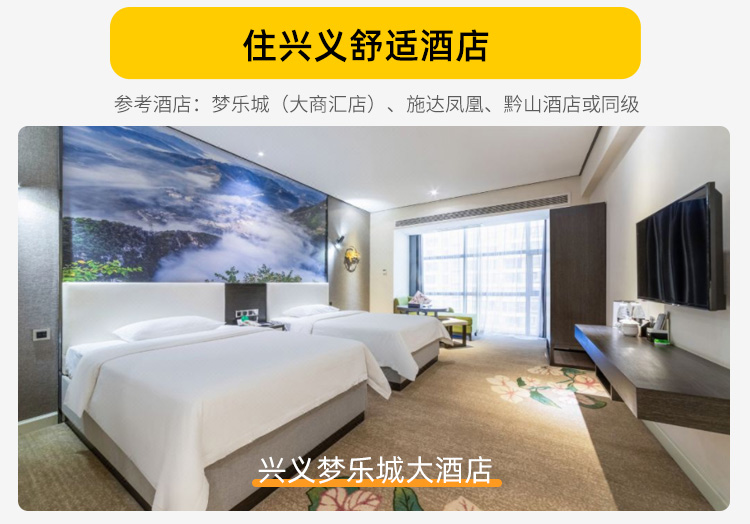 兴义酒店参考:梦乐城(大商汇店)、施达凤凰、黔山酒店、赣兴酒店、富鑫酒店、钱隆汇同等级酒店没有房时,安排同等级酒店