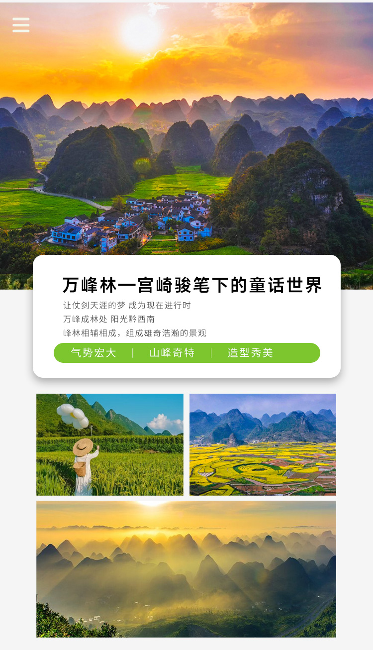 行程中所列景点首道大门票,含万峰林、万峰湖、贵州醇、马岭河