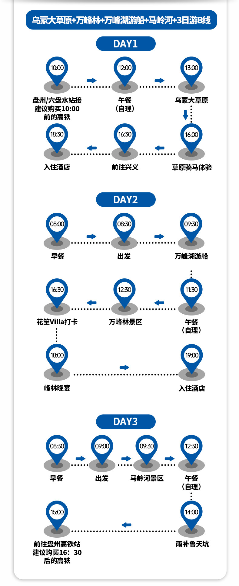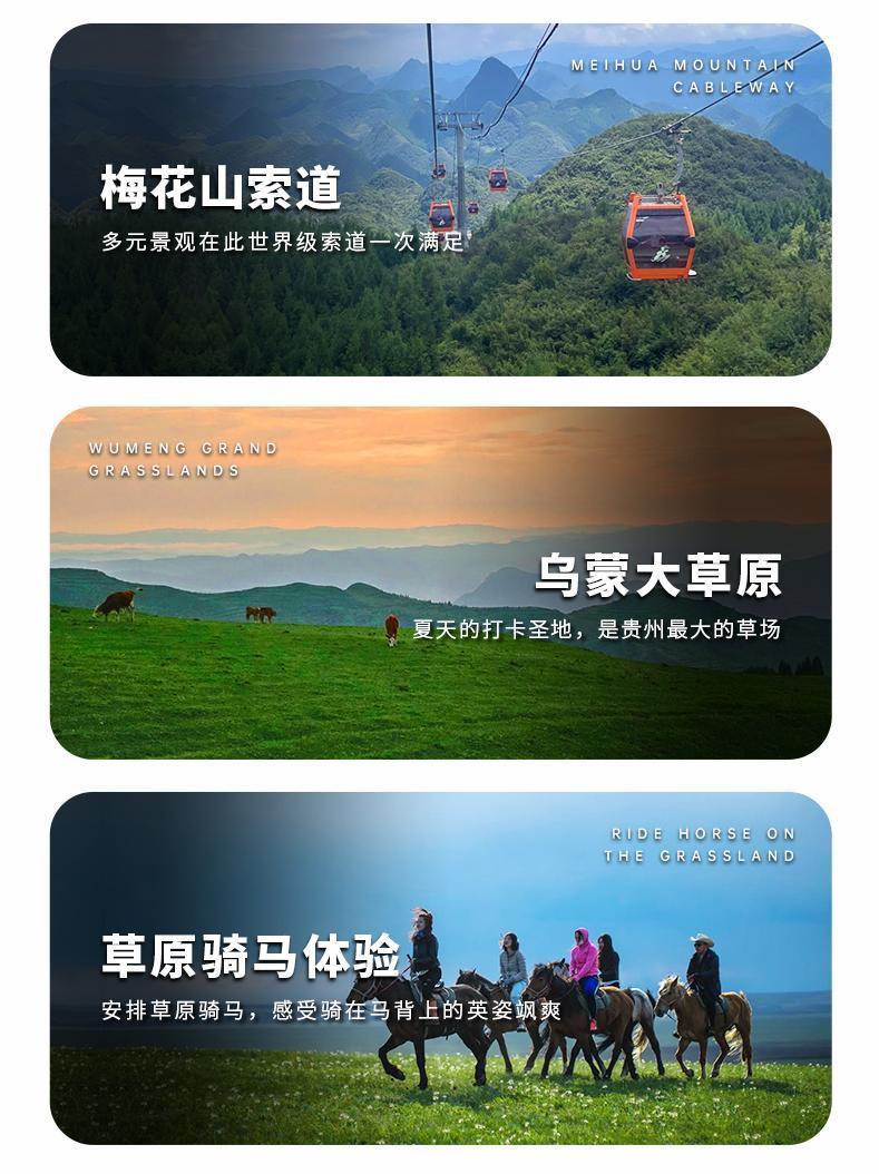 A线包含:乌蒙大**原景区门票、马岭河大峡谷景区门票、万峰林景区门票+观光车、梅花山索道往返程费用