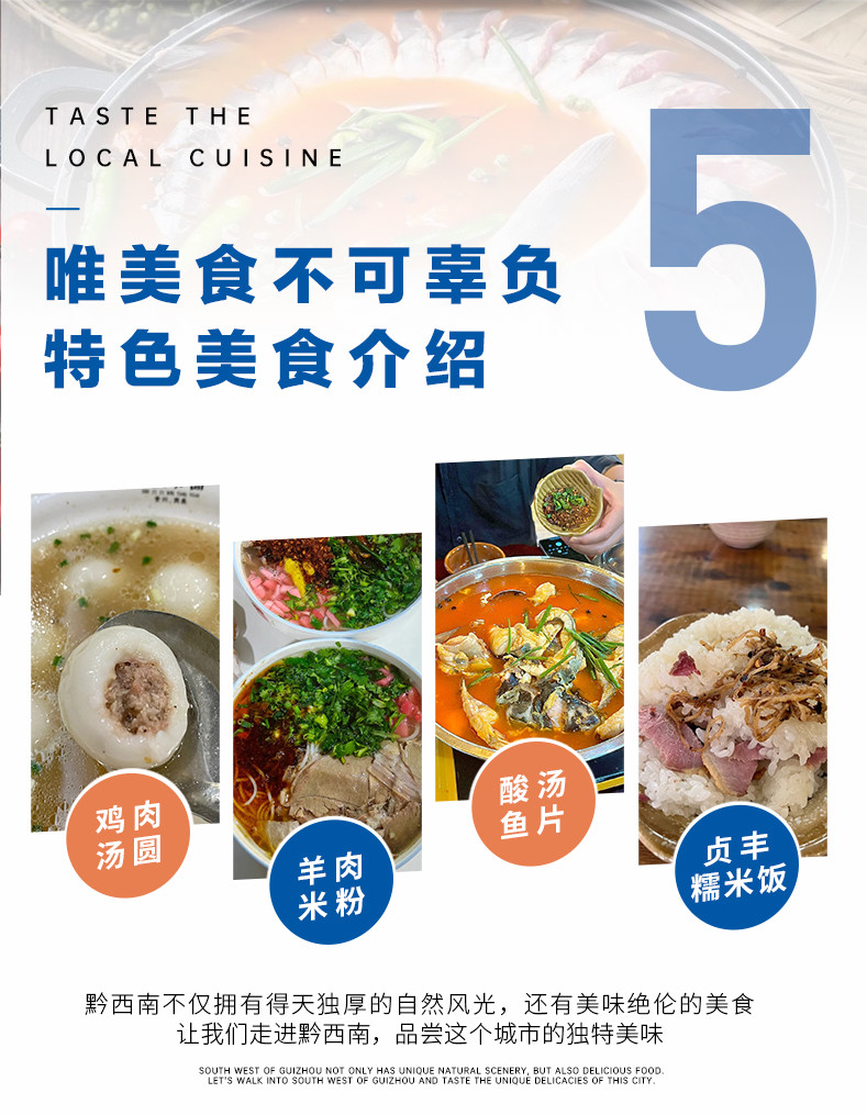 午餐时间到了,来当黔西南,不如品尝一下当地的美食吧!我们的司导可以给您推荐的当地小菜馆或者您也可以上美食网搜一下附近的美食,想吃什么点什么吧~