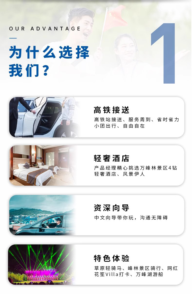 我们特地安排了**原骑马体验,让您除了能看到**原风景还能体验到骑在马背上英姿飒爽