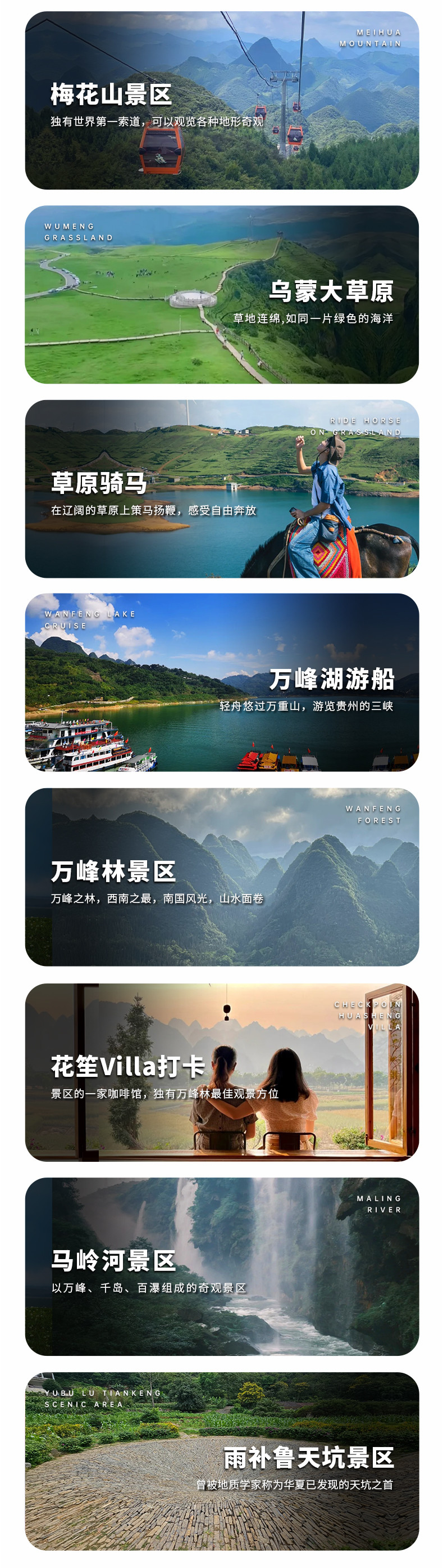 B线包含:乌蒙大**原景区门票、马岭河大峡谷景区门票、万峰林景区门票+观光车、万峰湖游船