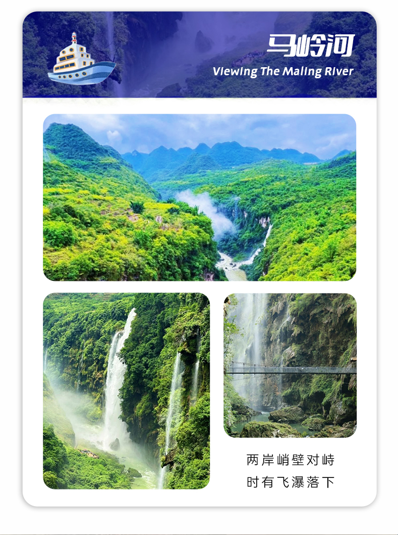 马岭河峡谷是喀斯特多层次地貌景观的集中表现,以地缝嶂谷、群瀑悬练、碳酸钙壁挂而著名。它的地貌结构与一般峡谷不同,实际上是一条地缝,有人说这是地球上美丽的伤疤