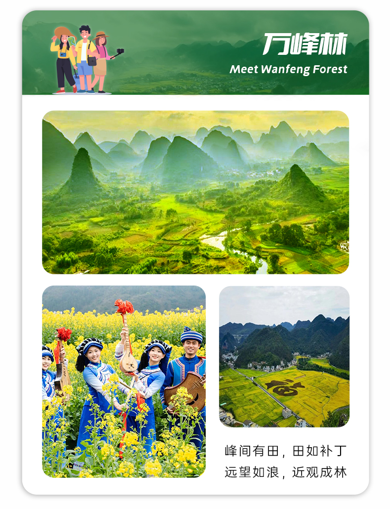 今天我们特地安排了当地布衣族的特色美食,在美丽的峰林里一边吃着美食一边欣赏峰林夜景,真的是太舒服了...(不用餐费用不退,景区套票)