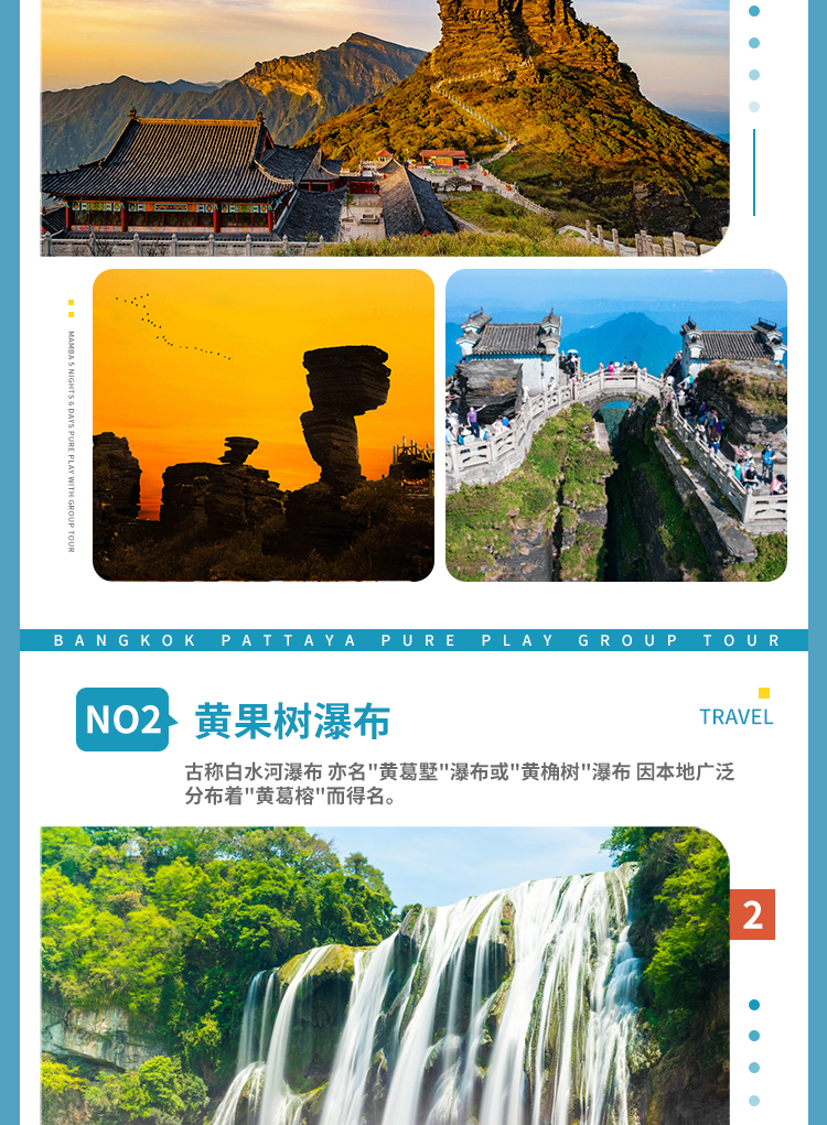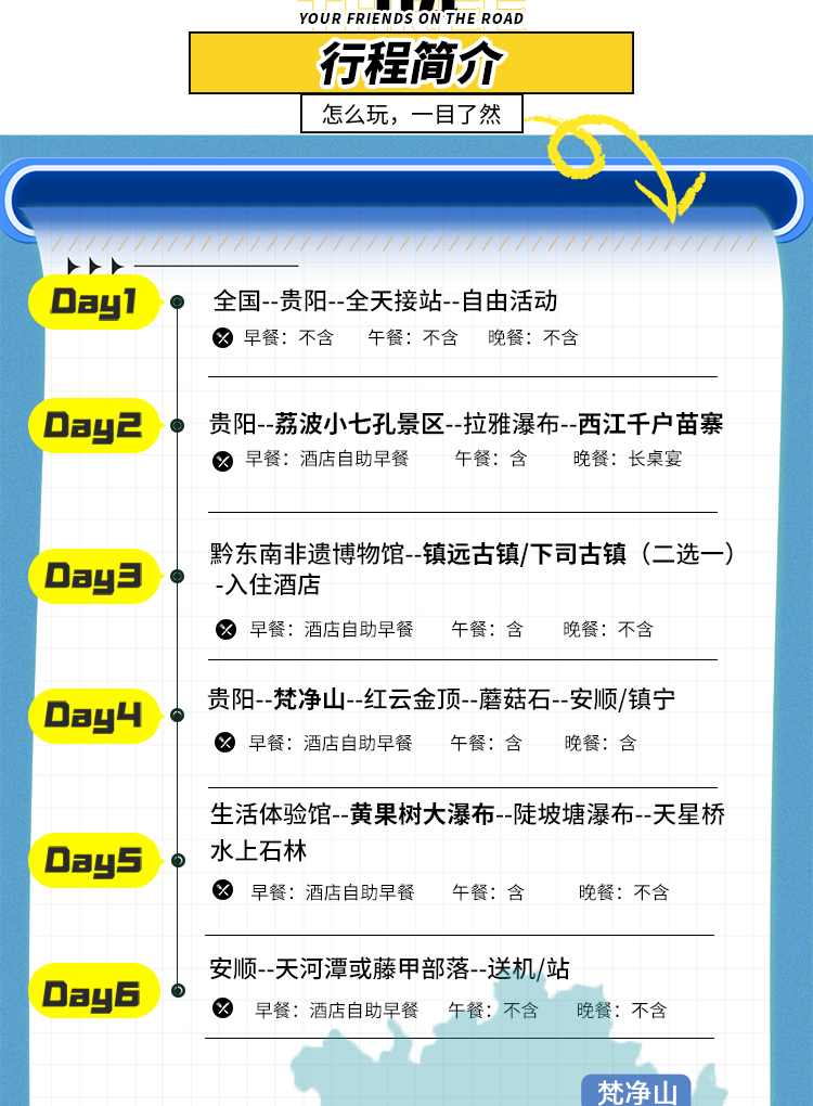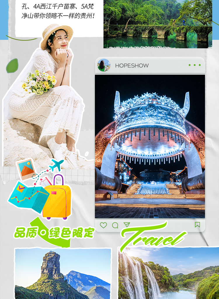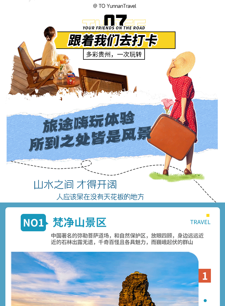 1、贵州地处云贵高原地区,山路较多,请穿轻便、柔软休闲鞋子,素有天无三日晴之说,天气多雨,请自备晴雨伞,景区经常有雨雾天气、及冬天雪地路滑,请注意踩稳,行走不宜过快,小心慢行。