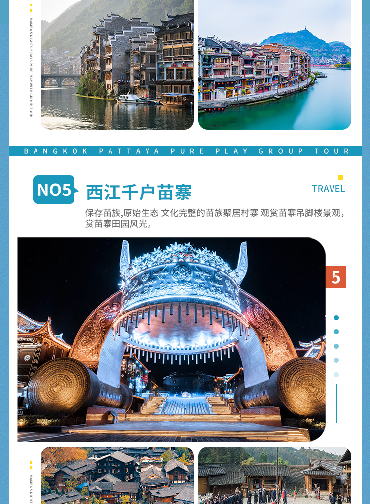 游览【西江千户苗寨】需换乘电瓶车(不含电瓶车30元/人)带你走进苗家人的生活走街蹿巷,参观苗家生活博务馆,上观景台欣赏西江全景。