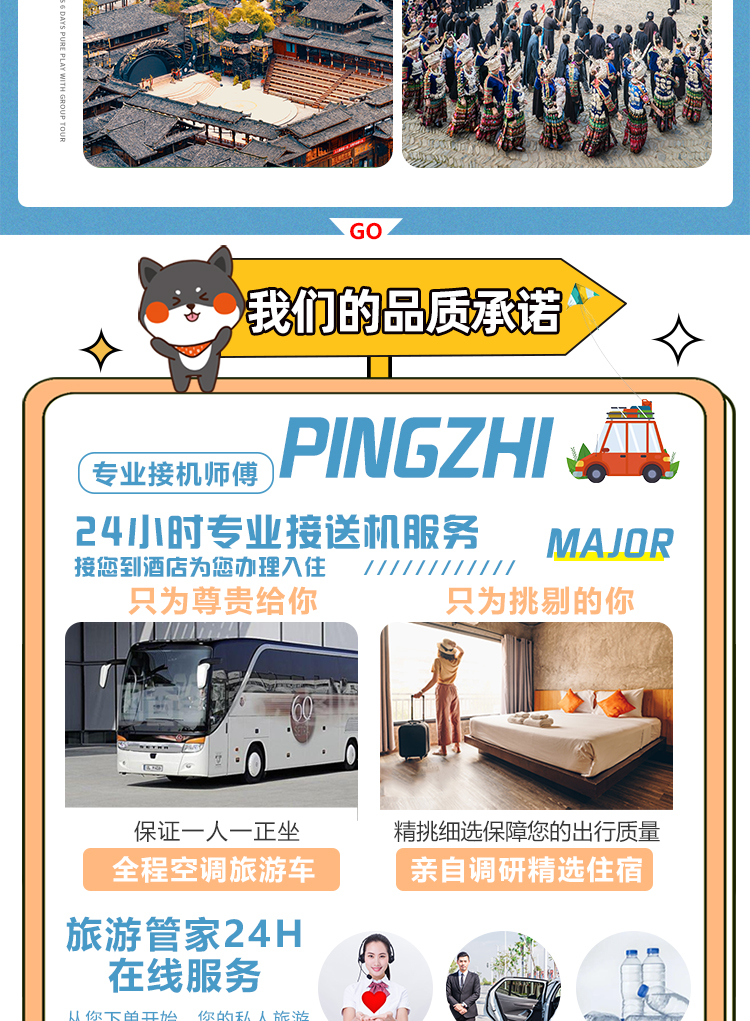 1、贵州普遍经济水平落后,住宿硬件和软件条件都有限,请不要以城市的标准来衡量,敬请谅解!行程中提到的酒店名称,为经济舒适型住宿,是非国家旅游局授牌的星级酒店,仅指旅行社行业内部评称,特别告知!同等级酒店的设施因地区不同而有较大差距,遇特殊原因(如天气,交通,地面,酒店接待能力),可能变更住宿地点,客人不可指定住任何酒店,须随团安排,标准不变。