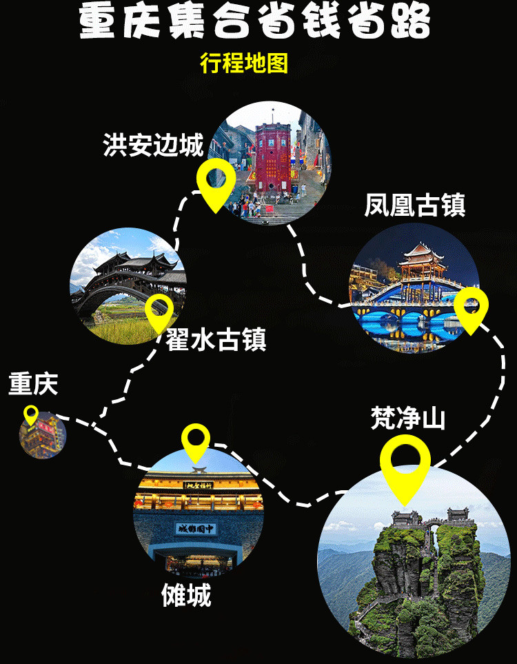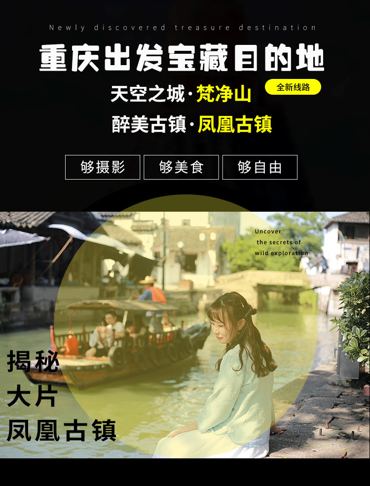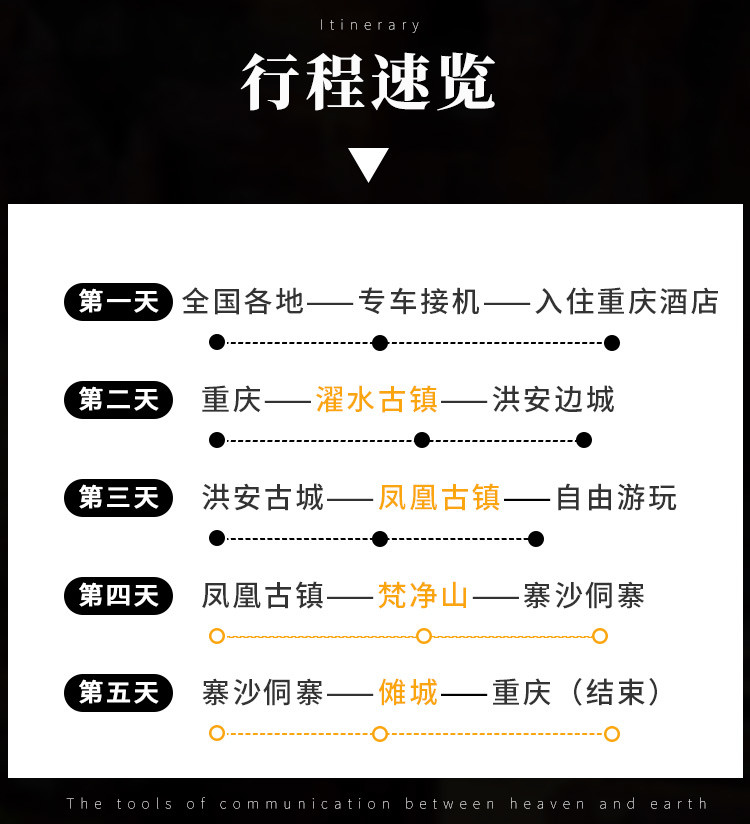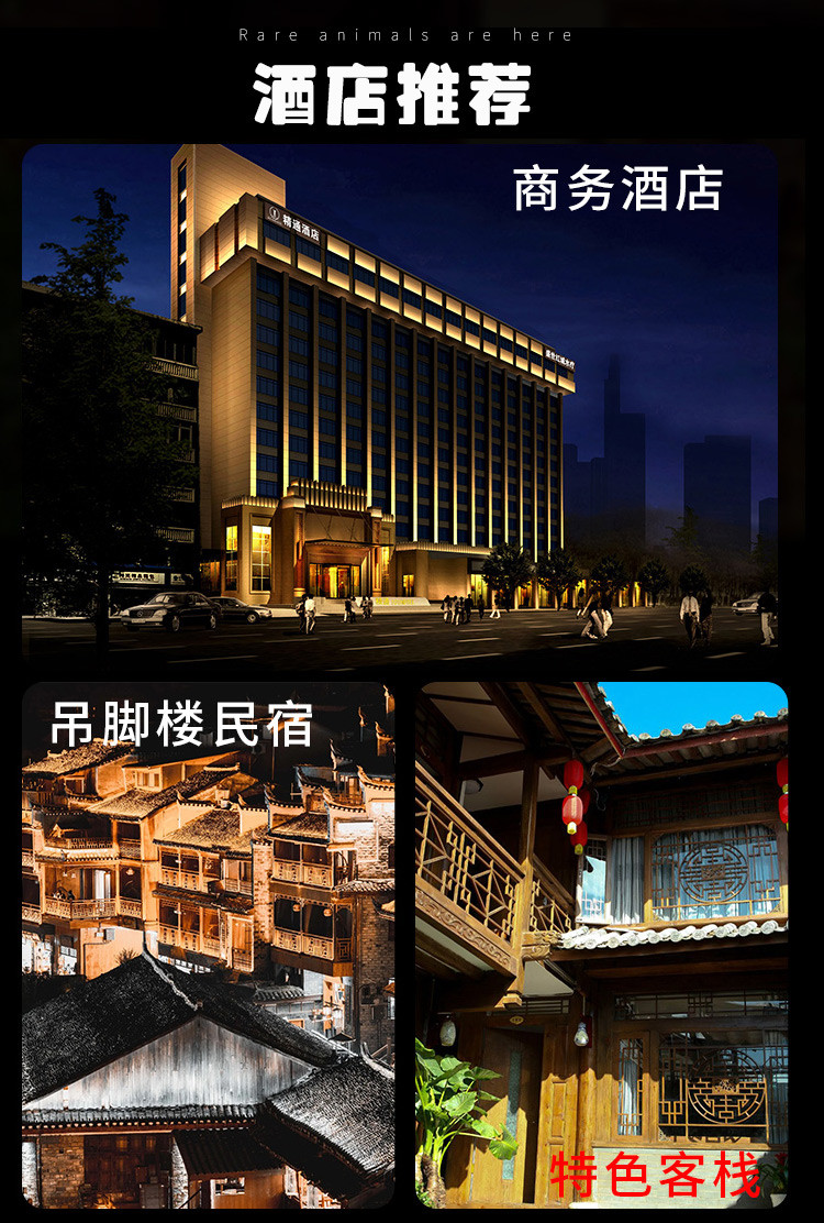 行程中所列酒店,重庆1晚、洪安古镇1晚、凤凰古城1晚、云舍村1晚