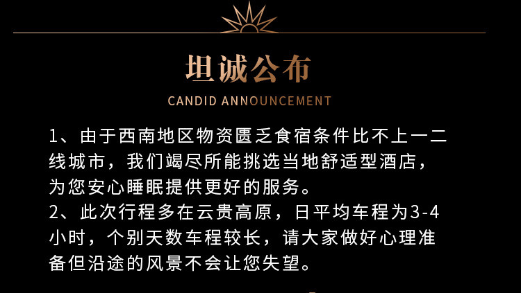 10、司机会在出发前1日就是集合日当天21:00沟通行程事宜,敬请留意,保持电话畅通,以免耽误行程!如未和您联系请及时联系客服。
