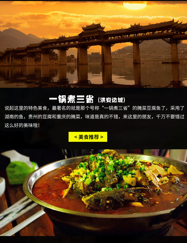 洪安古镇,位于长江上游地区、重庆市东南部,秀山县境东南,是重庆、贵州、湖南三省市交界之地,有"渝东南门户"之称,是一脚踏三省的插花地,也是沈从文笔下的《边城》原型 。