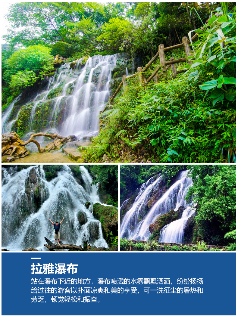 备注:如遇人力不可抗拒的因素(如途中交通堵车,车坏、山体滑坡等),未能在预计时间内抵达或未能完成行程,我社将会尽量协调,但所产生的费用由游客自理;因天气因素导致天星桥景区不能安全游览的情况,根据景区公告,我中心有权减少该景区,套票不做部分退款。