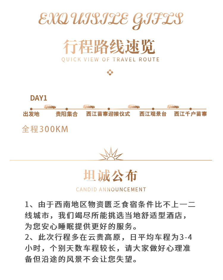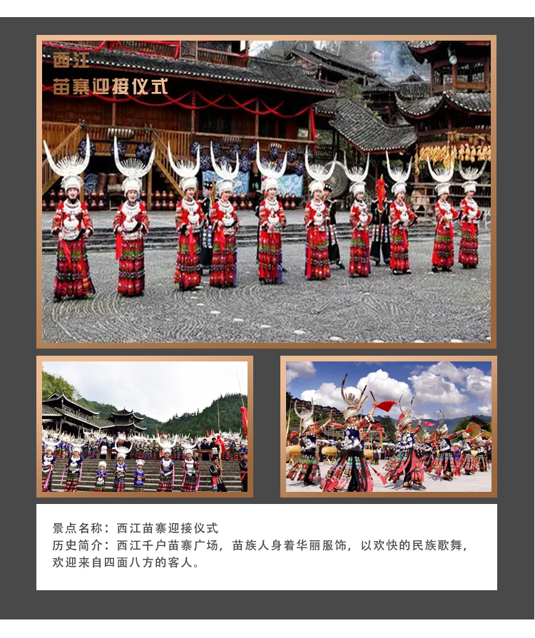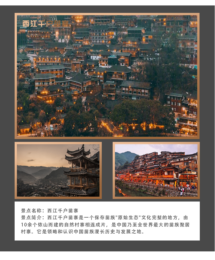 【本日车程】350公里,高速,行驶:4.5小时左右 【本日看点】西江千户苗寨 【本日吃点】酸汤鱼,长桌宴