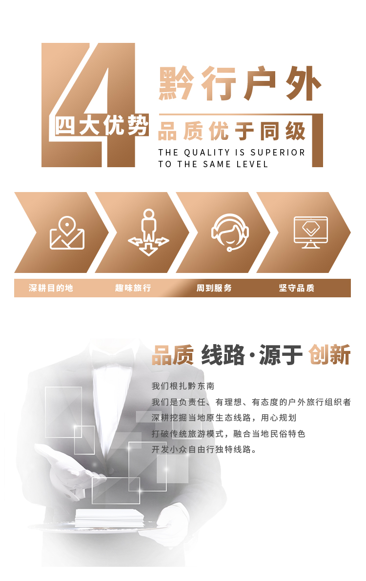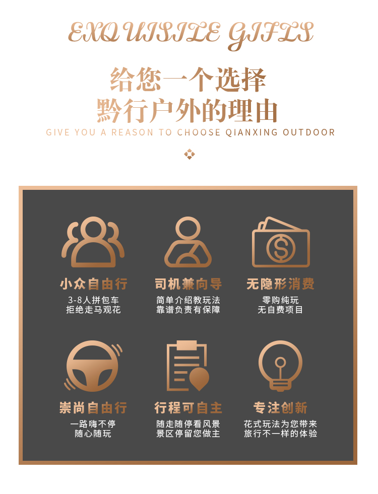 【报名须知】 一、报名须知 1、黔行户外的活动不同于传统旅游线路,对游客的安全、环保和团队协作精神要求较高,以中国公民国内旅游文明行为公约为准。 2、为保证活动质量和安全,保证一人一座;报名时按缴费人数参团,未缴费成功者,旅行社不承担责任。 3、黔行户外提供住宿为标准间,住宿按2成人入住一标准间(提供2个床位,或1个大床),行程中标明多人间,在不出现房差的情况下我们尽量安排以家庭或朋友、情侣关系入住,如不能实现,我们将按照男女分住原则进行拼房,如不愿拼房或未能拼房,请补齐单房差以享用整个房间;如报名要求单独住一个房间的,升级或者更换房型,请在报名时备注或致电客服确认是否能安排,需补足差额。 4、按照国际惯例,酒店须在14:00后方能办理入住,在12:00之前办理退房手续,部分需要本人缴纳押金。 5、1.4米以下的儿童,费用含车费、保险、管家司机补贴及组织成本费等。不含门票及住宿。儿童如需占床需补单房差,门票、早餐超高需自理。 6、持有特殊证件的,如:军官证、老年证、残疾证、学生证等特殊证件,请游客提前出示给管家或司机,按旅行社协议价为依据(均不以挂牌价为准),在旅行活动最后一天由管家或司机按旅社协议价退费。 7、为了保证活动顺利进行和活动安全,如无特殊情况都要求大家参加全程活动。但如因个人原因中途退出,离团前则需签离团协议,如拒签脱团强行脱团者,我社以同团其他游客口头证明和手机通话录音、视频等作为脱团凭证。离队后的一切安全责任和费用均由个人自行承担。 8、因交通、罢工、天气、飞机火车故障、航班取消或更改时间、等不可抗力原因所引致的取消活动或自己终止活动,旅行社不承担责任。个人原因延误飞机、火车、动车不能按时参加行程的,旅行社不承担责任。按实际未产生的费用3-5个工作日退还到相应的报名账户,其他额外费用,由游客承担;管家或司机有权利在不减少行程景点的情况下先后调整游览顺序。我社当天会发多条线路,报名相似线路的游客可能会拼到同一辆车,第二天或中途要调换车辆,司机师傅有所改变,游览的景点不会减少。单人报名无法成团的情况,我社会拼到其他旅行社或其他旅行社拼到我社统一发团,敬请谅解。 9、所有团队均按照2人以上成行,如果报名为1人时,请致电客服是否可安排出行,如客户在不确认的情况下直接下单成功,我公司将会与客户协商更改团期或者独立成团,如不同意协商我们将视作报名无效(3-5个工作日做退款处理),旅行社不承担任何赔偿责任。 10、游客在行程中或自由活动期间私自变更行程的人身、财产权益受到损害的,管家或司机在事前提示警示说明义务且事后已尽到必要救助义务,但旅行社不承担责任。 11、司机会在出发前1日就是集合日当天21:30沟通行程事宜,敬请保持电话畅通,以免耽误行程!如未和您联系请及时联系客服。 12、每个人携带行李箱不超过22-24寸,2人合用不超过26寸。切记 二、限制人群 1、未满18周岁的旅游者请由家属陪同出游或家属代为报名; 因服务能力所限,不接受18周岁以下旅游者单独报名出游,不接受3周岁以下儿童报名,敬请谅解。 2、60周岁以上老年人预订出游,须有家属或朋友陪同(签署高龄旅游者协议)方可出游; 因服务能力所限,不接受70周岁以上的旅游者出游报名,敬请谅解。 3、凡有传染性疾病、高血压疾病、心血管疾病、脑血管疾病、呼吸系统疾病、精神病、严重贫血病、大中型手术的恢复期病患者、行动不便者、孕妇等其他不适合出行者请勿报名。代他人报名者也请核实代报人的身体状况。如未如实告知,途中由于自身原病因引发的任何突发疾病旅行社不承担责任。 4、非大陆籍客人预订,外籍人士(含港澳台同胞)咨询客服。 三、退团说明 1、国内游活动凡是报名付款后,要退出活动的,按照下列标准向旅行社支付业务损失费: 行程开始前7日以上,可以调换班期,具体损失和客服沟通。 行程开始前6日至4日,按旅游费用总额的20%。 行程开始前3日至1日,按旅游费用总额的40%。 行程开始当日,按旅游费用总额的60%。 2、在活动进行当中退团,必要的费用扣除标准为: 旅游费用×行程开始当日扣除比例+(旅游费用-旅游费用×行程开始当日扣除比例)÷旅游天数×已经出游的天数。 4、旅游者未按约定时间到达约定集合地点,也未能在出发当天途中加入旅游团队的,视为旅游者退团,按出发当日退出活动的支付比例进行扣除。 【其他说明】 此行程不含景区电瓶车费及各种娱乐项目费用,敬请周知; 因自身原因提出的售后,不予处理,组团社自行承担,敬请谅解; 我社赠送景点,如不参观费用不退; 我社当天会发多条线路,报名相似线路的游客可能会拼到同一辆车,第二天或中途要调换车辆,但保证行程不变,游览的景点不会减少,敬请谅解; 若1-15人成团,我社会调派熟悉线路的专职司机兼管家,不再另派管家,敬请谅解; |
