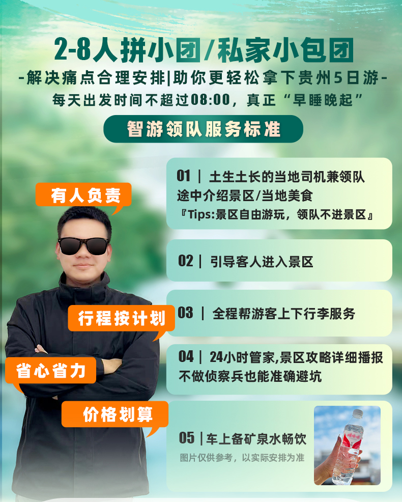 1. 该产品包含贵阳站接站,到达贵阳前一天会有接站师傅联系接站事宜,如超过21:30未接待联系,敬请联系在线客服或电话联系4006588799转12955;