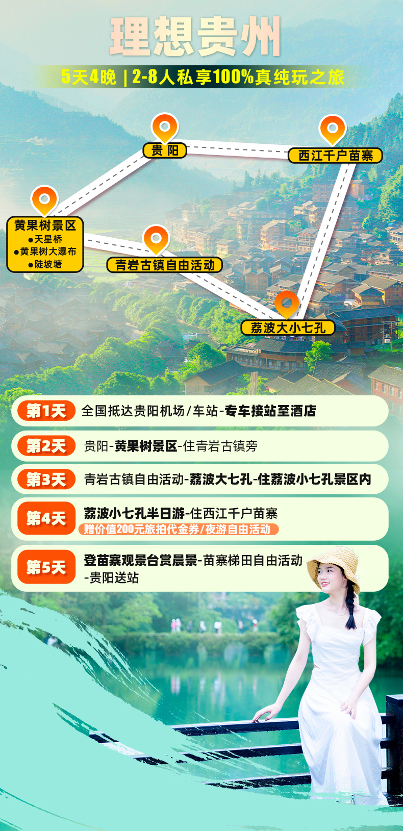 包含黄果树瀑布+荔波大小七孔套票+西江千户苗寨+青岩古镇(青岩古镇为旅行社奖励免票);