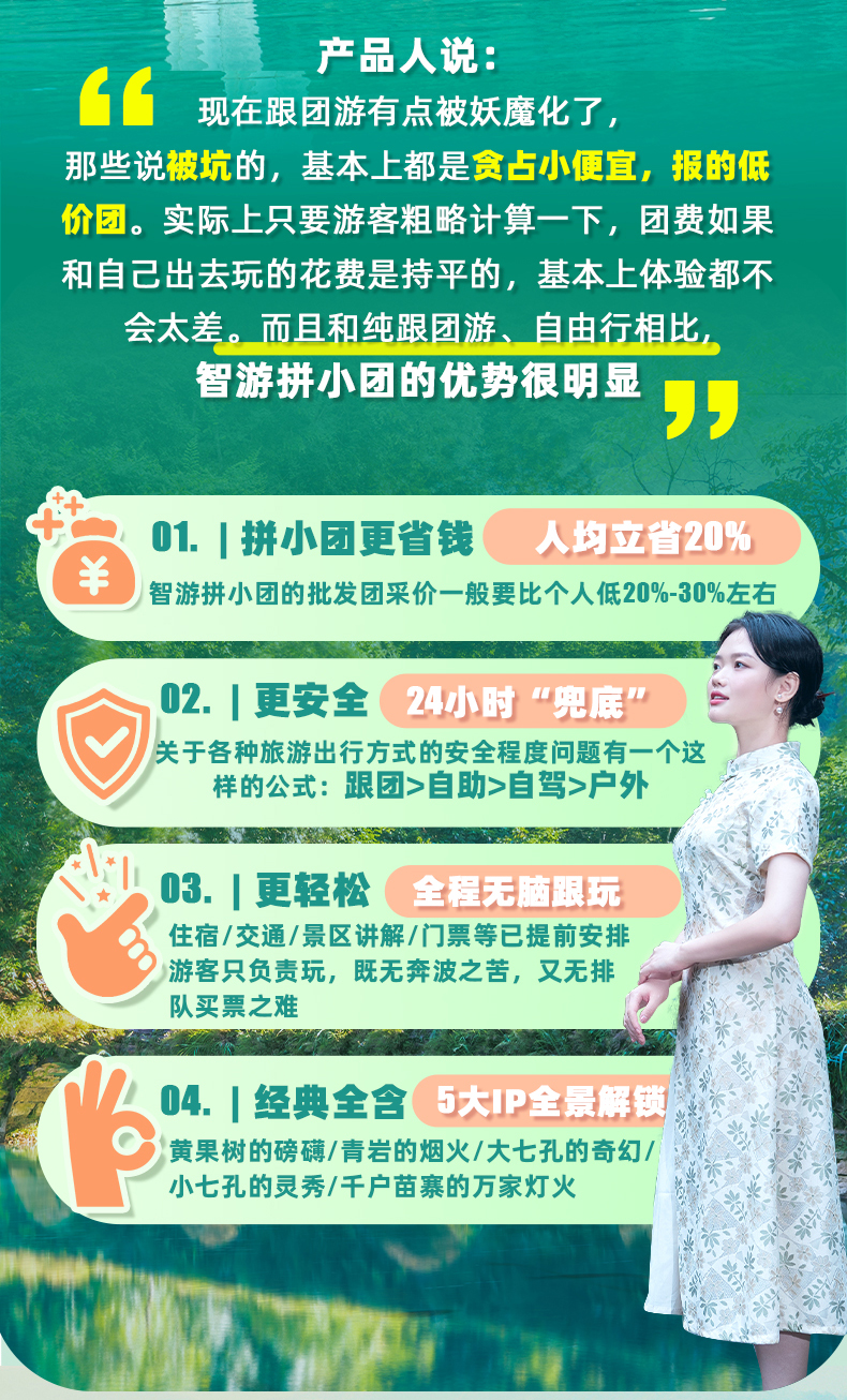 2. 门票说明:本产品已将相关景点进行优惠打包,14岁以下儿童免门票,但需大人带领进入景区。因旅行社门票为团队优惠票,持各类特殊证件(如:军官证、记者证、老年证、学生证、残疾证等优惠证件)