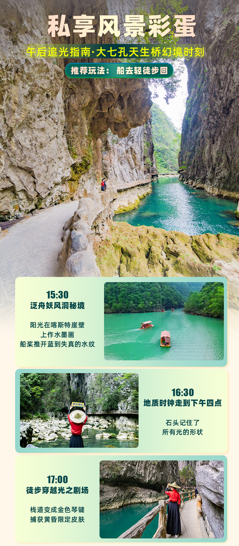 1、贵州地处云贵高原地区,山路较多,请穿轻便、柔软休闲鞋子,素有天无三日晴之说,天气多雨,请自备晴雨伞,景区经常有雨雾天气、及冬天雪地路滑,请注意踩稳,行走不宜过快,小心慢行