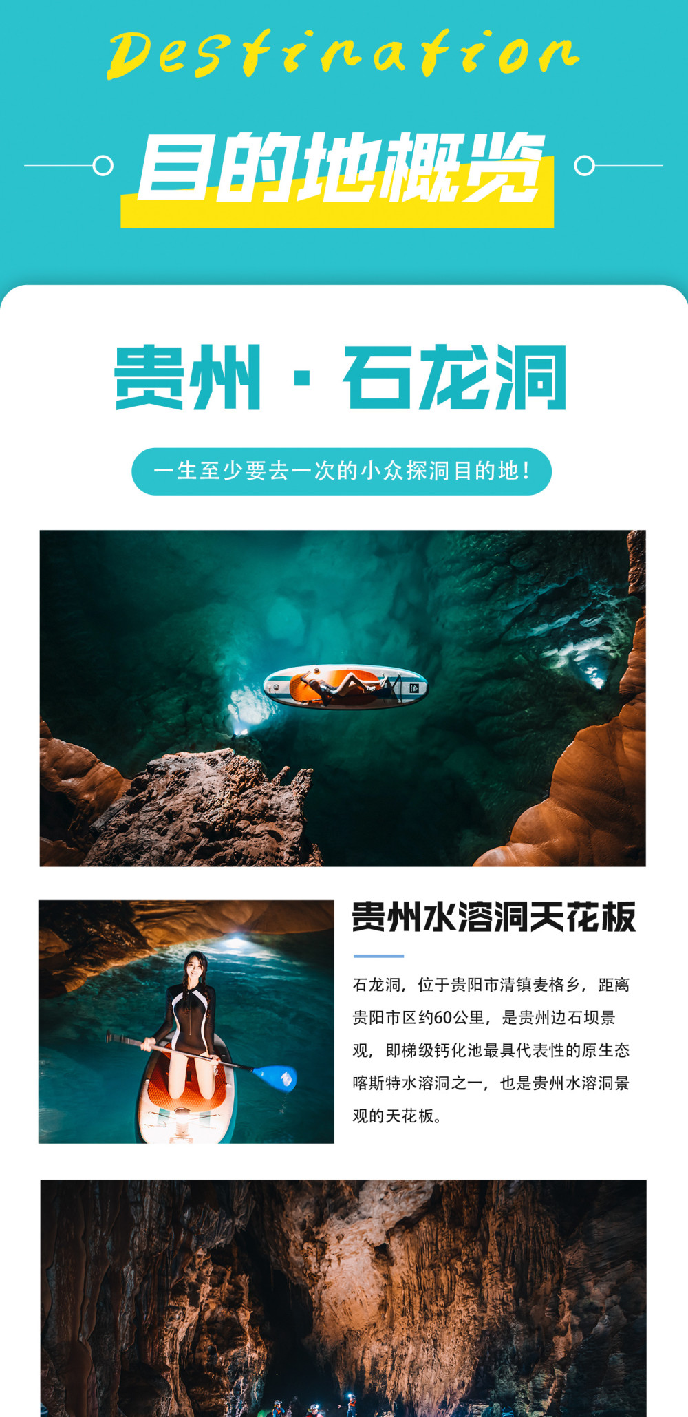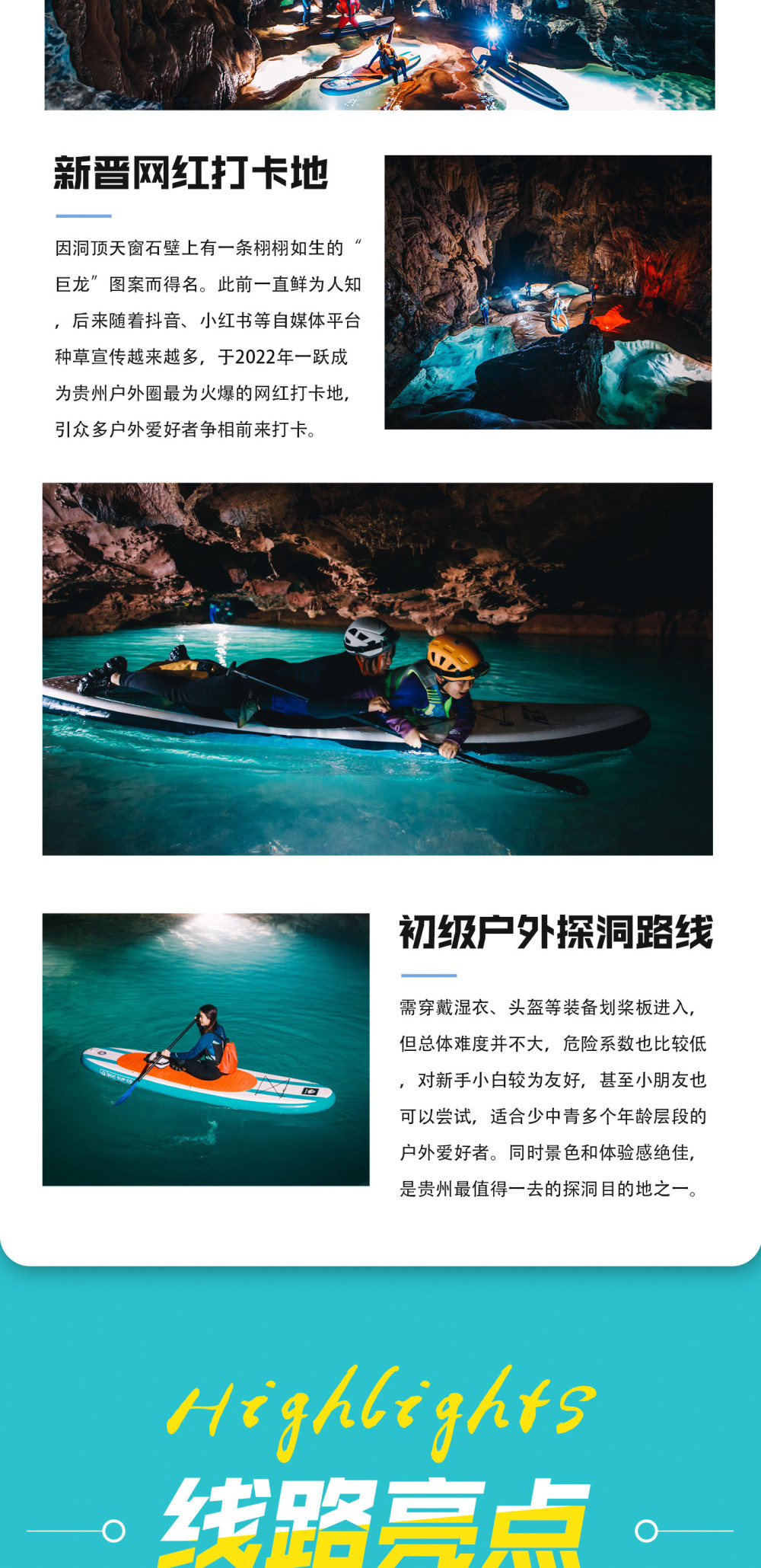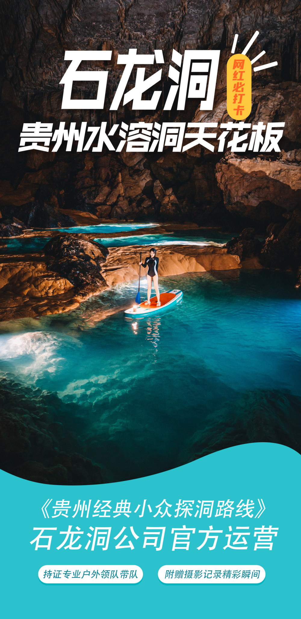 进洞,一路划桨板经过无数绝美地下瑶池一路惊叹,跟着领队一起拍大片