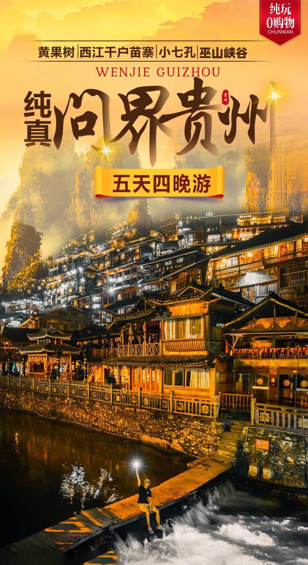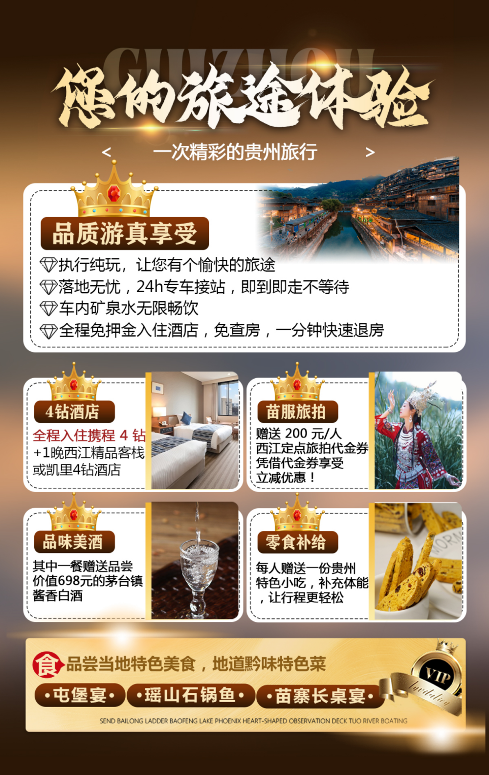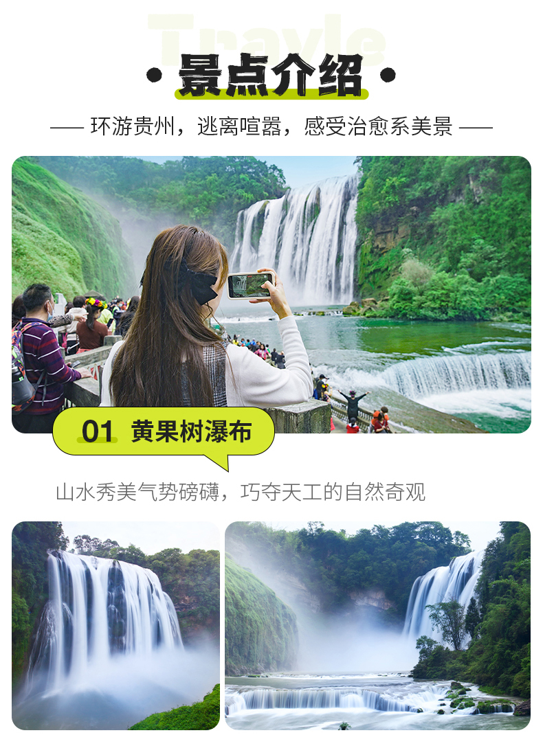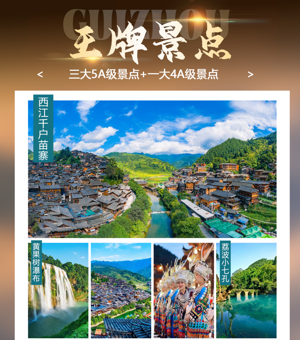 行程中所列景点首道大门票,黄果树门票、小七孔门票、西江千户苗寨门票、天河潭门票