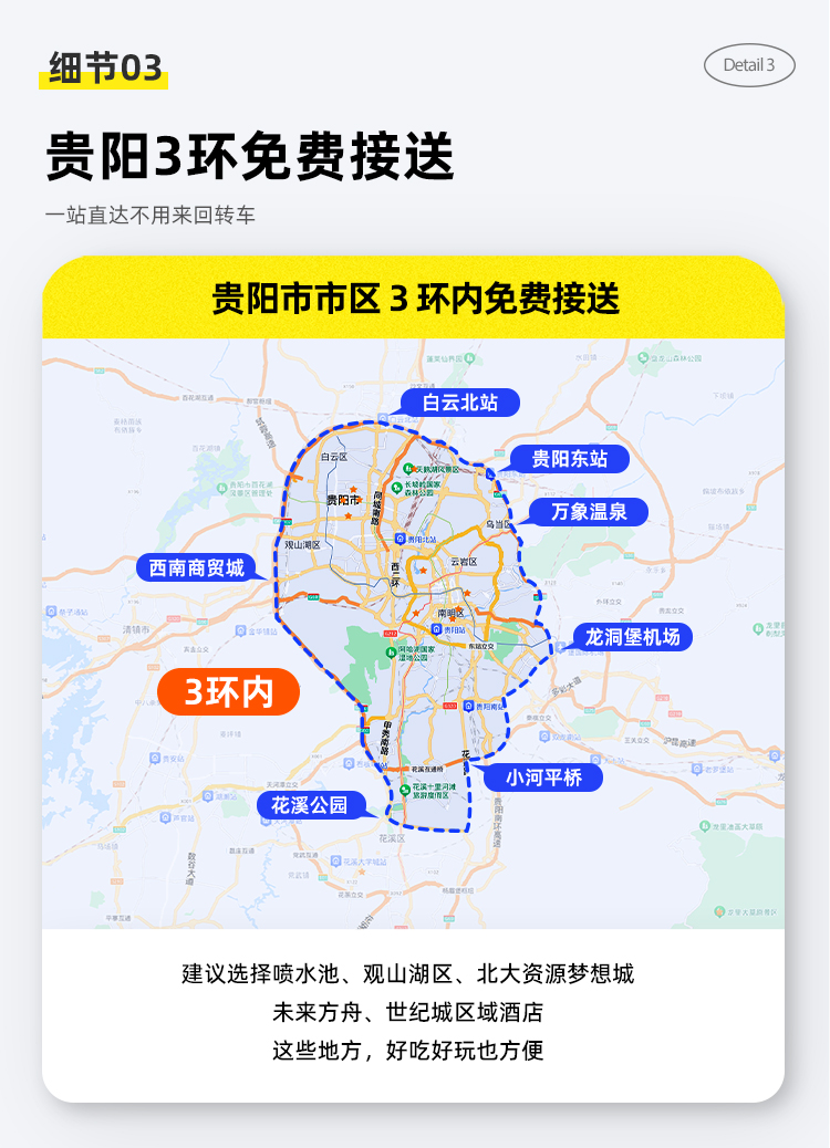 贵阳3环免费接送,超出区域需加收80-100元/趟的接驳费用